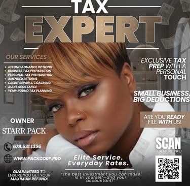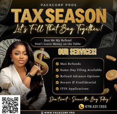 Reach out to packcorp for help with taxes, notary, credit repair, or business growth.